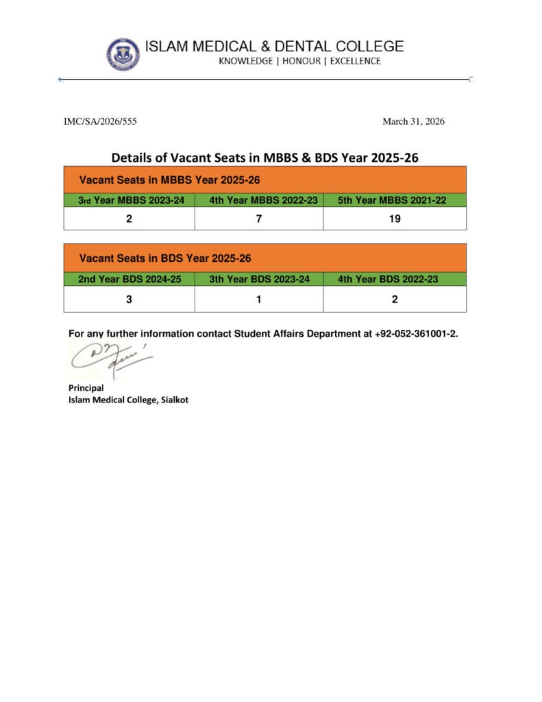 IMC aims to produce world class doctors, who are motivated to serve the humanity selflessly, to stay abreast with scientific development and compete nationally and internationally in community of doctors, specialists, researchers and medical scientists. For this purpose, rich and supportive environment enables students to actively pursue their educational goals.